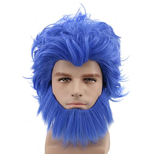 My Costume Wigs Men Short Curly Blue Layered Anime Cosplay Wig Halloween Costumes Party Hair Wigs